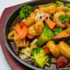 Ingrediente: ciuperci 50g, bambus 30g, urechi de lemn 50g, broccoli 30g, ardei gras 50g, morcov 50g, usturoi 10g, ceapa 20g, sos de stridii 10g, sos de soia 10g, amidon 20g