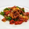 Ingrediente: carne de iepure 150g, ardei iute 30g, ardei gras 50g, ceapa 30g, pasta chilli 20g, zahar 2g, sos de soia 10g, piper chinezesc 3g